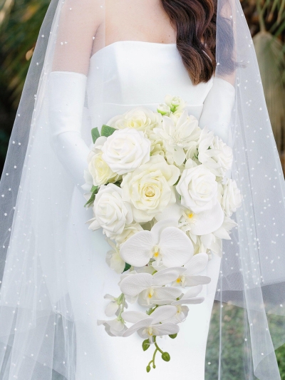At YOWEDDINGS, we specialize in creating exquisite artificial waterfall bouquets that bring timeless beauty to your special day. Each piece is thoughtfully designed to capture elegance and sophistication.